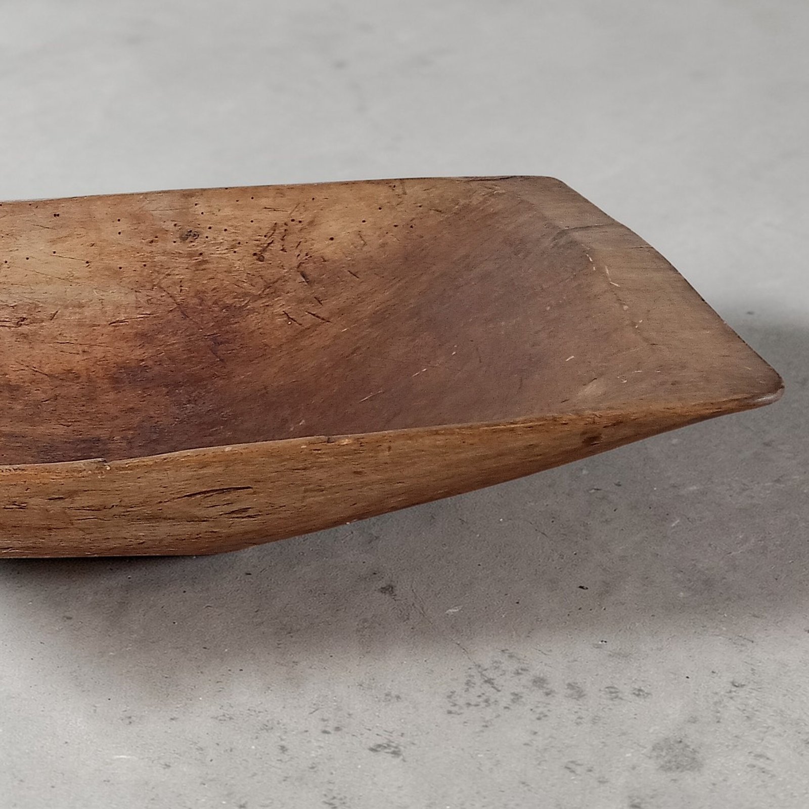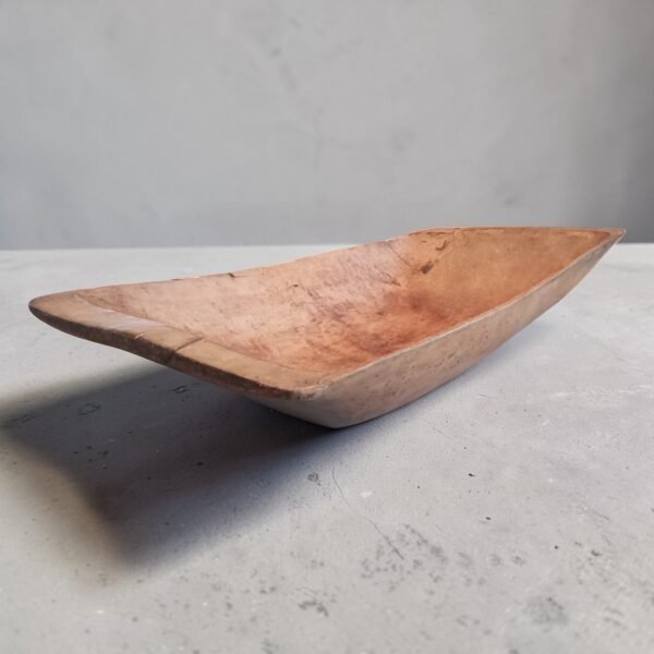 Deze prachtige antieke deegtrog dateert uit de 19e eeuw (ca. 1850–1870) en is vermoedelijk afkomstig uit Nederland of Vlaanderen. Het stuk is volledig met de hand vervaardigd uit één massief stuk olmenhout, wat zorgt voor een authentieke en robuuste uitstraling. De trog heeft een mooie, natuurlijke patina die door jarenlang gebruik is ontstaan en die het karakter en de geschiedenis van het object benadrukt. De subtiele gebruikssporen en het handwerk maken elk detail uniek.
