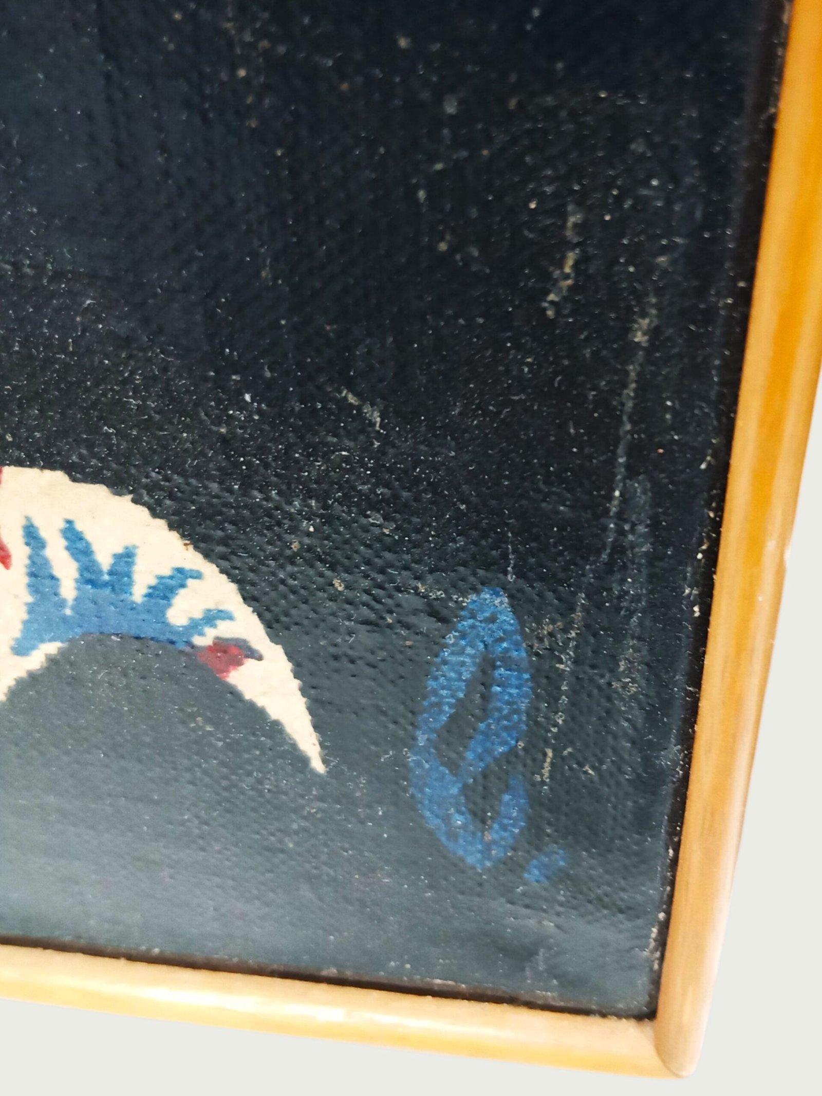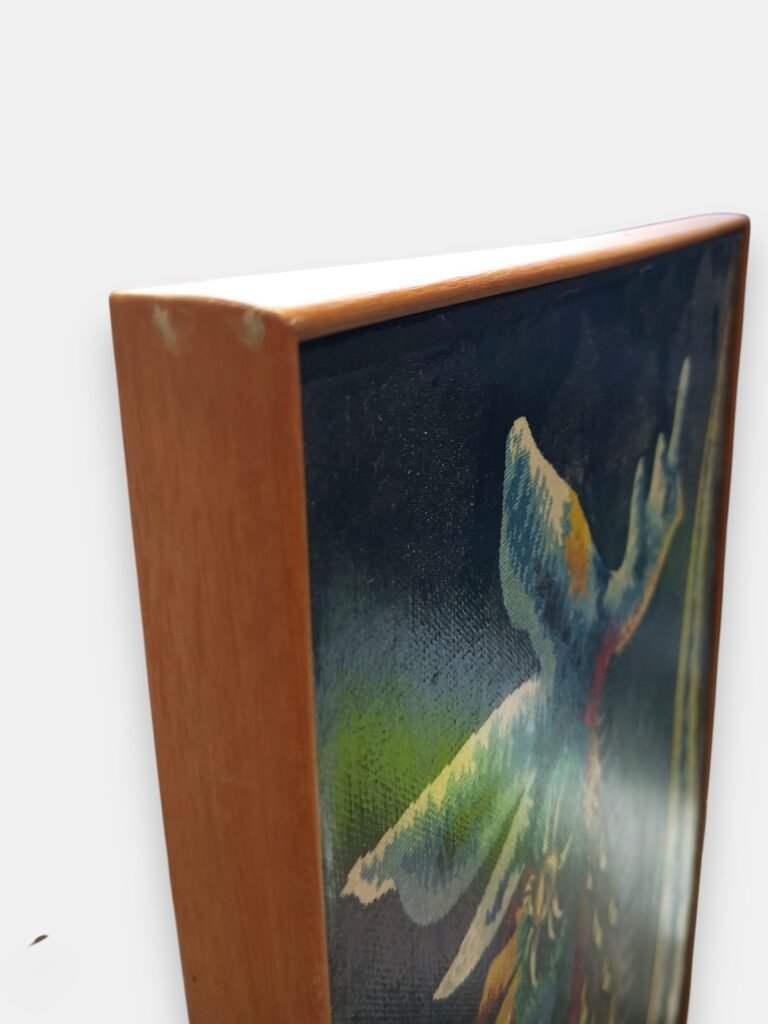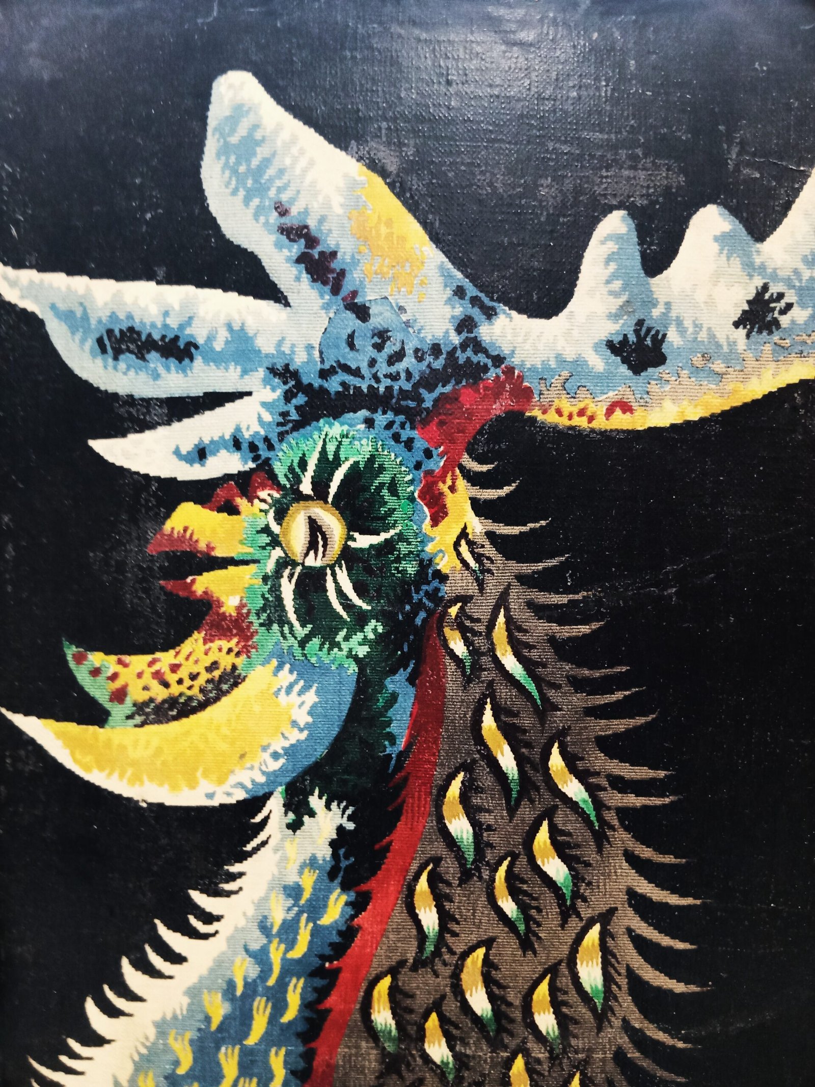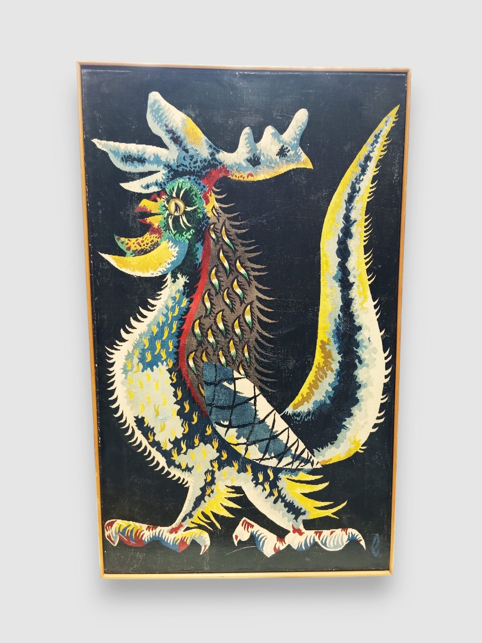 Prachtige vintage wanddecoratie uit de jaren ’60/’70: een canvas print naar het ontwerp “Le Guerrier” van Jean Lurçat.